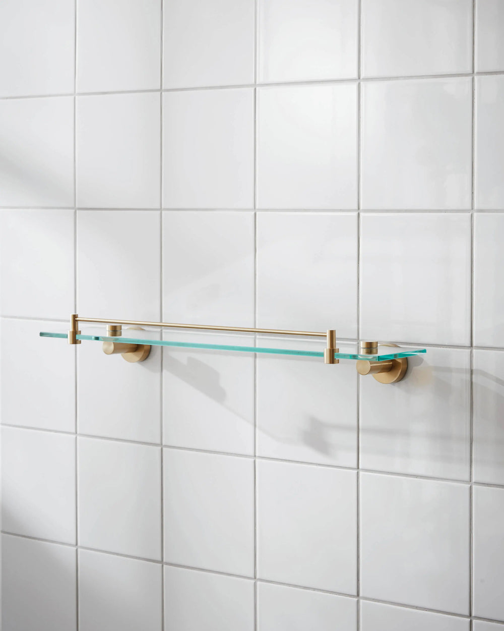 En badhylde i messing tilfører varme og luksus. Vælg børstet for et blødere look eller poleret for højglans. Husk at mat messing patinerer smukt over tid.