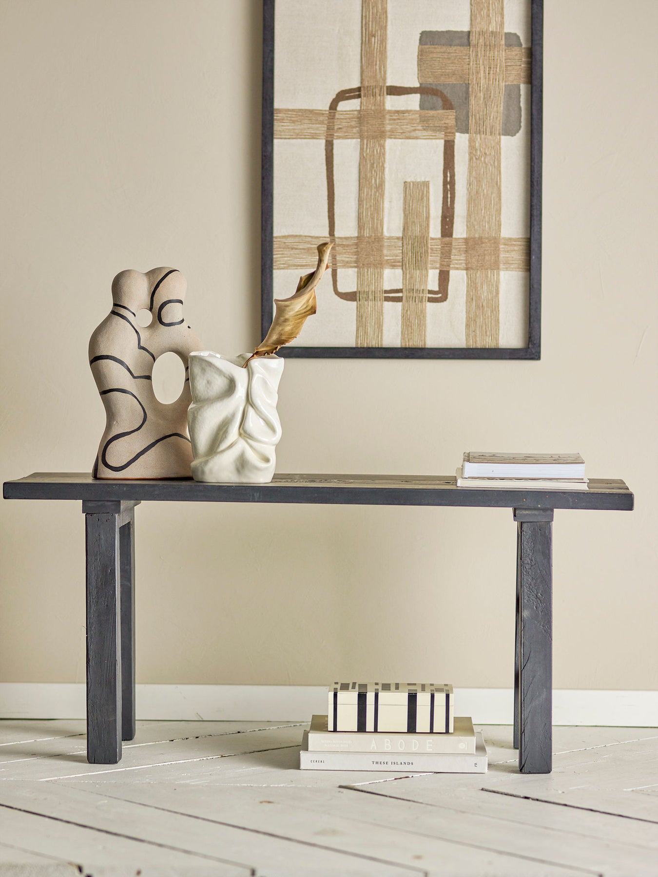 Riber Bænken fra Bloomingville er et enkelt, men stærkt designstatement, skabt til dig der elsker tidløst interiør med karakter. Fremstillet af genanvendt træ kombinerer Riber bæredygtighed, æstetik og funktionalitet på fineste vis. Det genanvendte træ giver hver eneste bænk sit eget særpræg, med naturlige variationer i struktur, åretegninger og overflade, som gør, at ingen to modeller er helt ens. Denne unikke kvalitet tilføjer rummet en følelse af autenticitet og varme – selv i det sorte, stilrene udtryk.