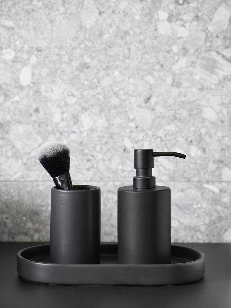 På Designstore har vi ett stort utbud av tvålpumpar för både badrummet och köket. Men vad är skillnaden mellan en tvålpump för badrummet eller köket? Skillnaden är inte särskilt stor, men vissa tvålpumpar är gjorda för att hängas på väggen i duschen och andra för att stå på bordet. Dessa tvålpumpar som är avsedda att stå på köksbordet eller vid handfatet i badrummet är i huvudsak desamma. På designstore tror vi att tvålpumpnen är mycket mer än bara en praktisk produkt som doserar tvål. Vi tror att tvålpumpnen i badrummet eller i köket är en stor del av den övergripande inredningen. Med en tvålpump i rätt design och material kan du lyfta den övergripande atmosfären och inredningen i badrummet eller i köket. De flesta av våra tvålpumpar ingår i en större badrumsserie, vilket är en serie produkter i samma design, material och färg. På så sätt kan du bibehålla ett tema genom att ha flera produkter i samma design. Dessa produkter kan inkludera en tandpetare, tvålkopp, toalettborste och mycket mer.
