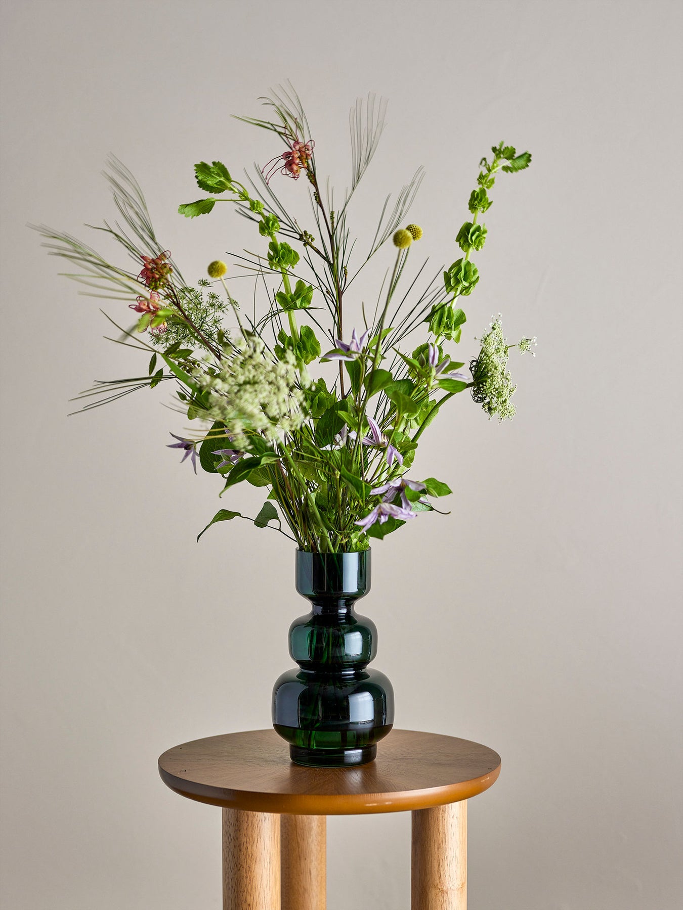Johnson Vasen fra Bloomingville er en dekorativ glasvase i en smuk grøn nuance. Vasen er perfekt til at tilføje et farverigt touch til hjemmet. Brug den som en enkeltstående dekoration eller fyld den med dine yndlingsblomster for at skabe et smukt centerpiece i rummet. Vær opmærksom på, at vasen er med sprayfarvet glas, og den bør derfor ikke rengøres i opvaskemaskinen eller med hårde rengøringsbørster eller -svampe.