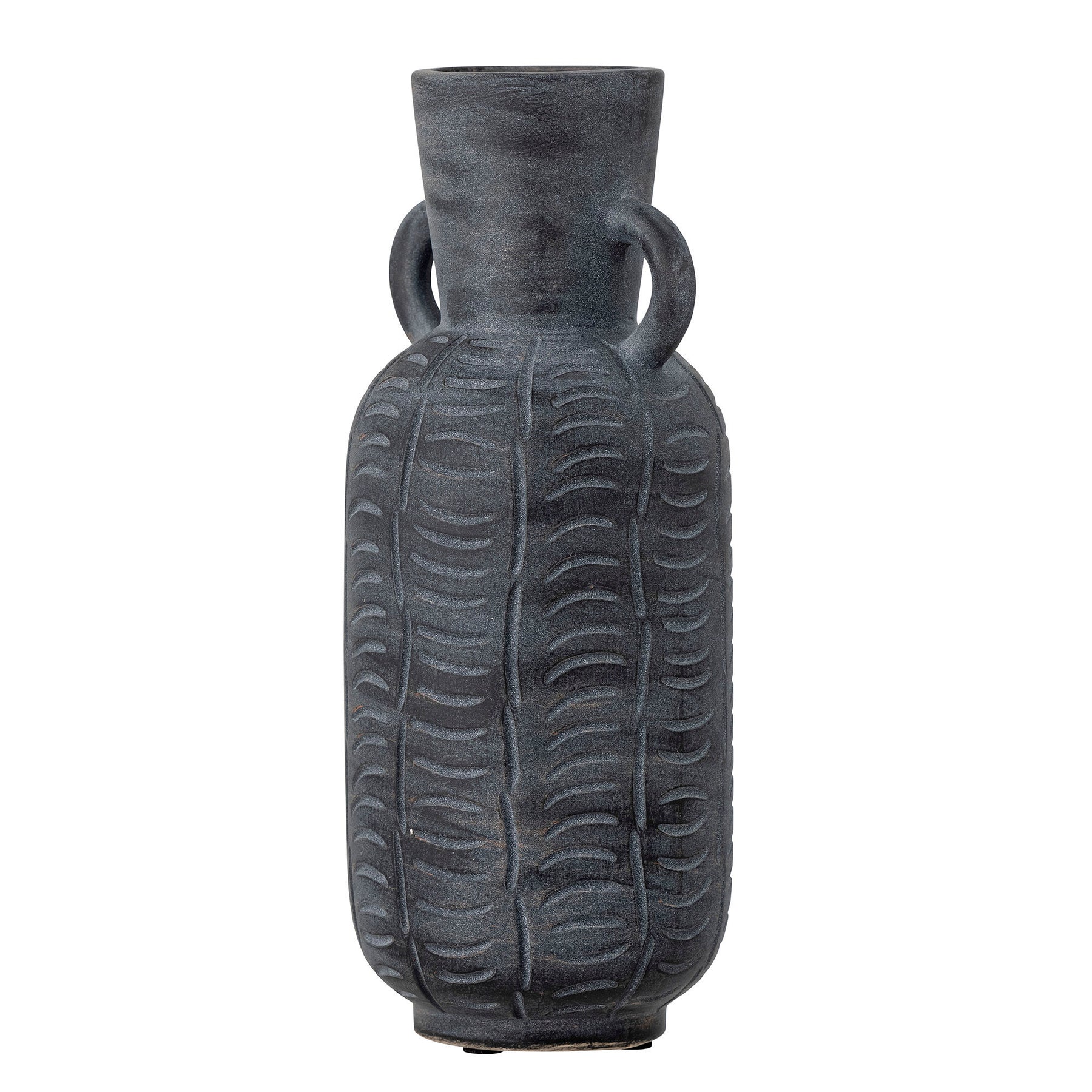 Rane Vasen fra Creative Collection er lavet af keramik med reaktiv glasur i en flot mørk farve. Den har en fin organisk form med et præget mønster og 2 håndtag. Hver vase vil være anderledes og unik på grund af den reaktive glasur.