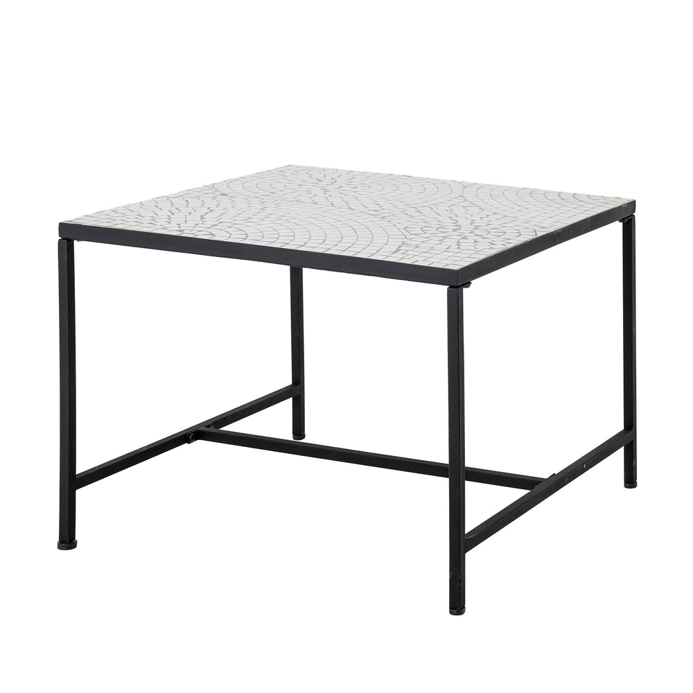 The Niah Coffee Table by Bloomingville is a minimalist and elegant coffee table. The table is made of metal with a top made of stone and white ceramic. The coffee table presents a nice off white design on the tabletop tiles, which contrasts perfect with the lightness of the structure.