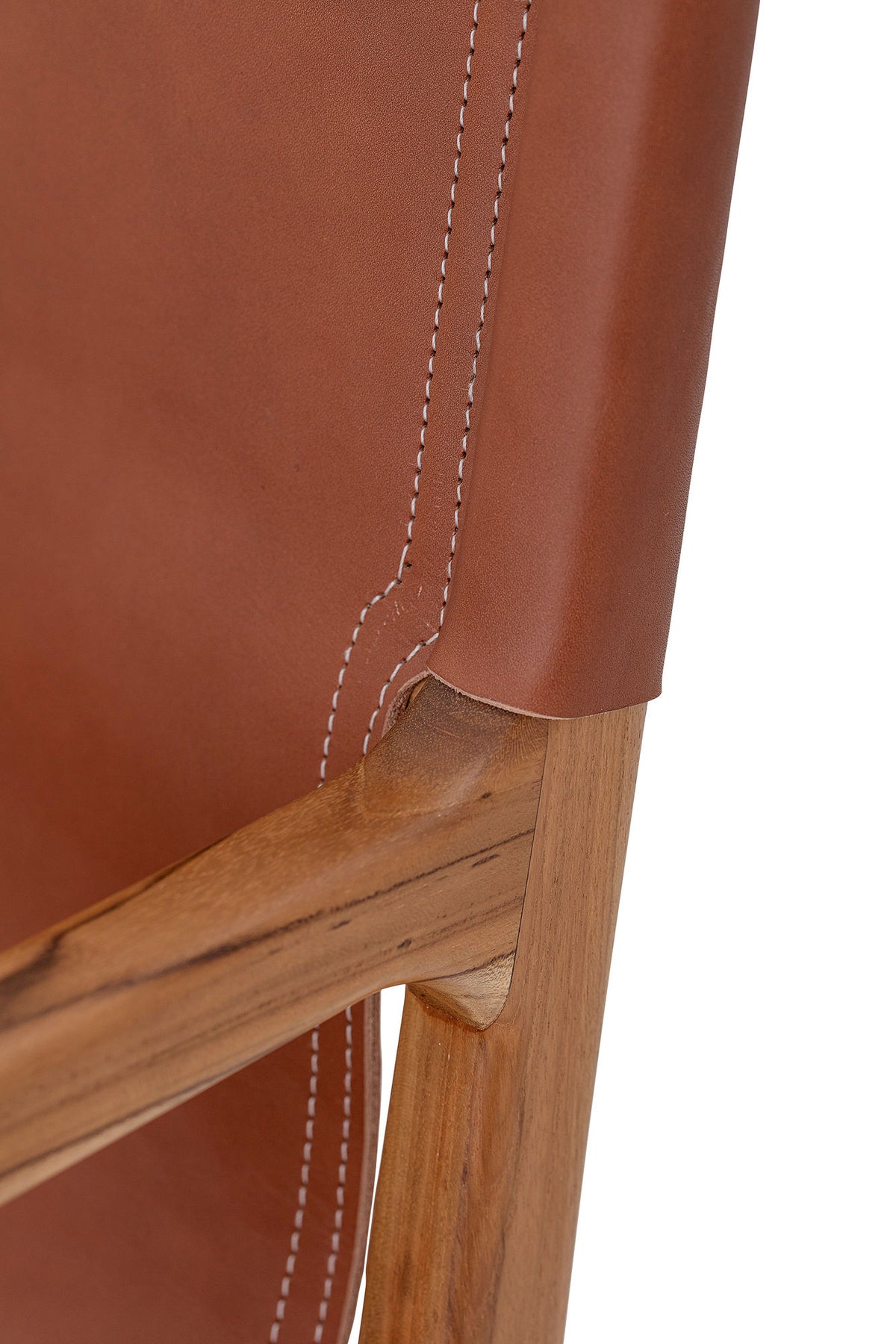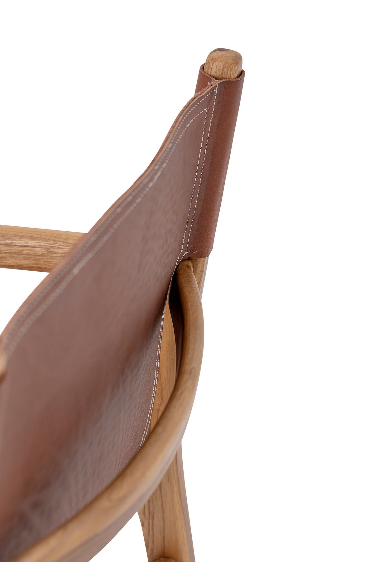 Ollie Lounge Chair fra Bloomingville er et særligt møbel, der minder om dansk designs store klassikere. Stolen er håndskåret og lavet af teaktræ med bløde kurvede former og brunt okselæder. Stolen har så mange smukke detaljer og er så behagelig, at man ikke har lyst at rejse sig fra den.