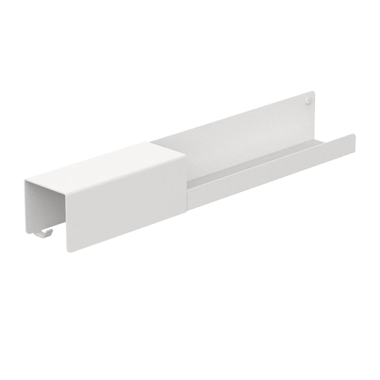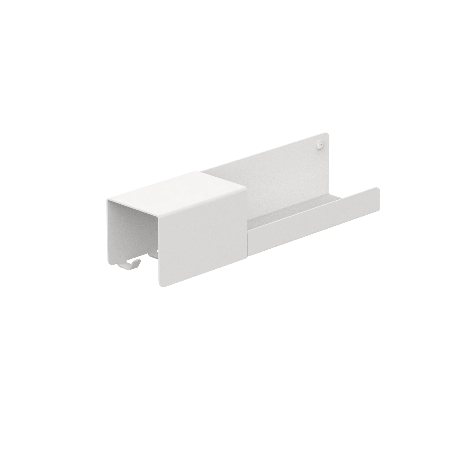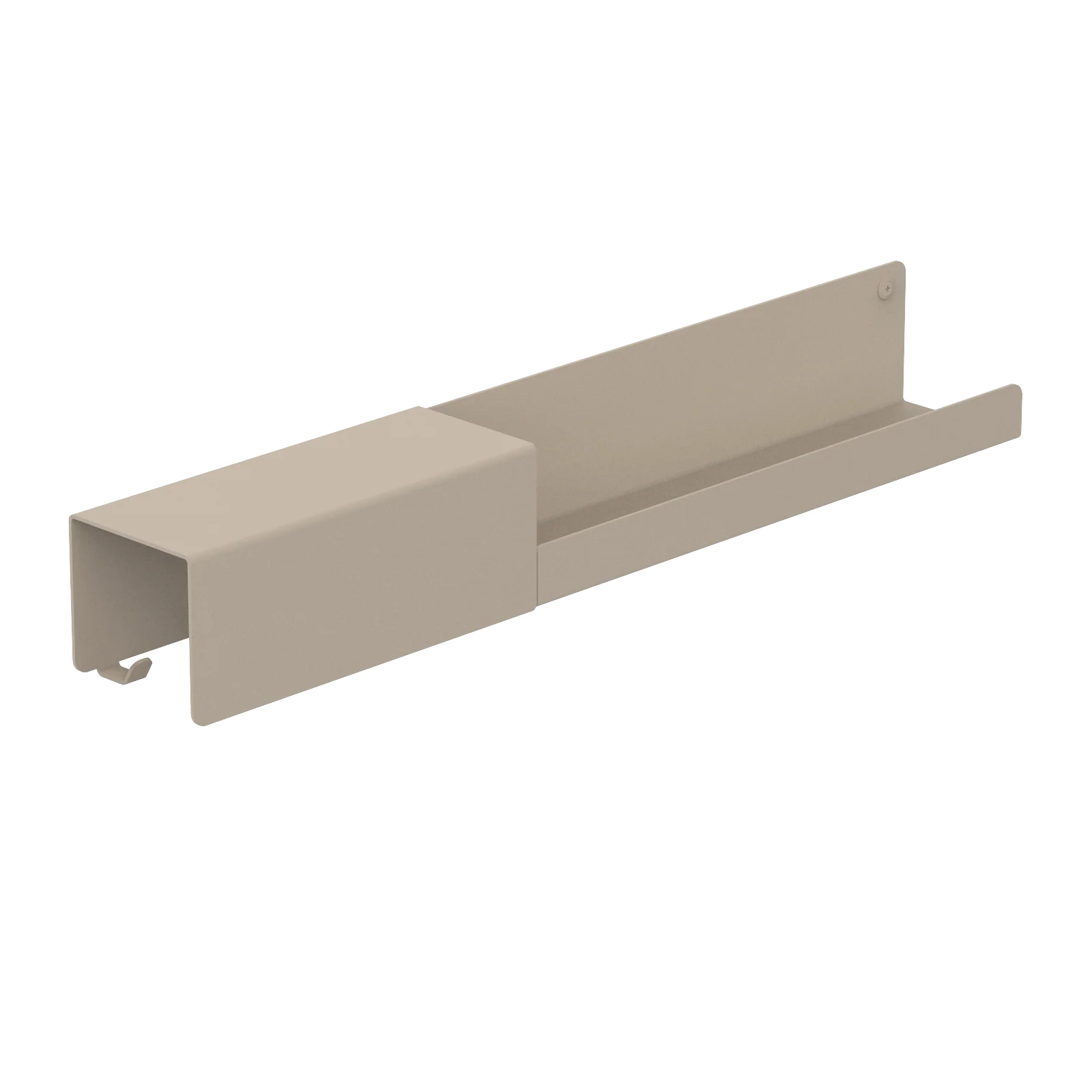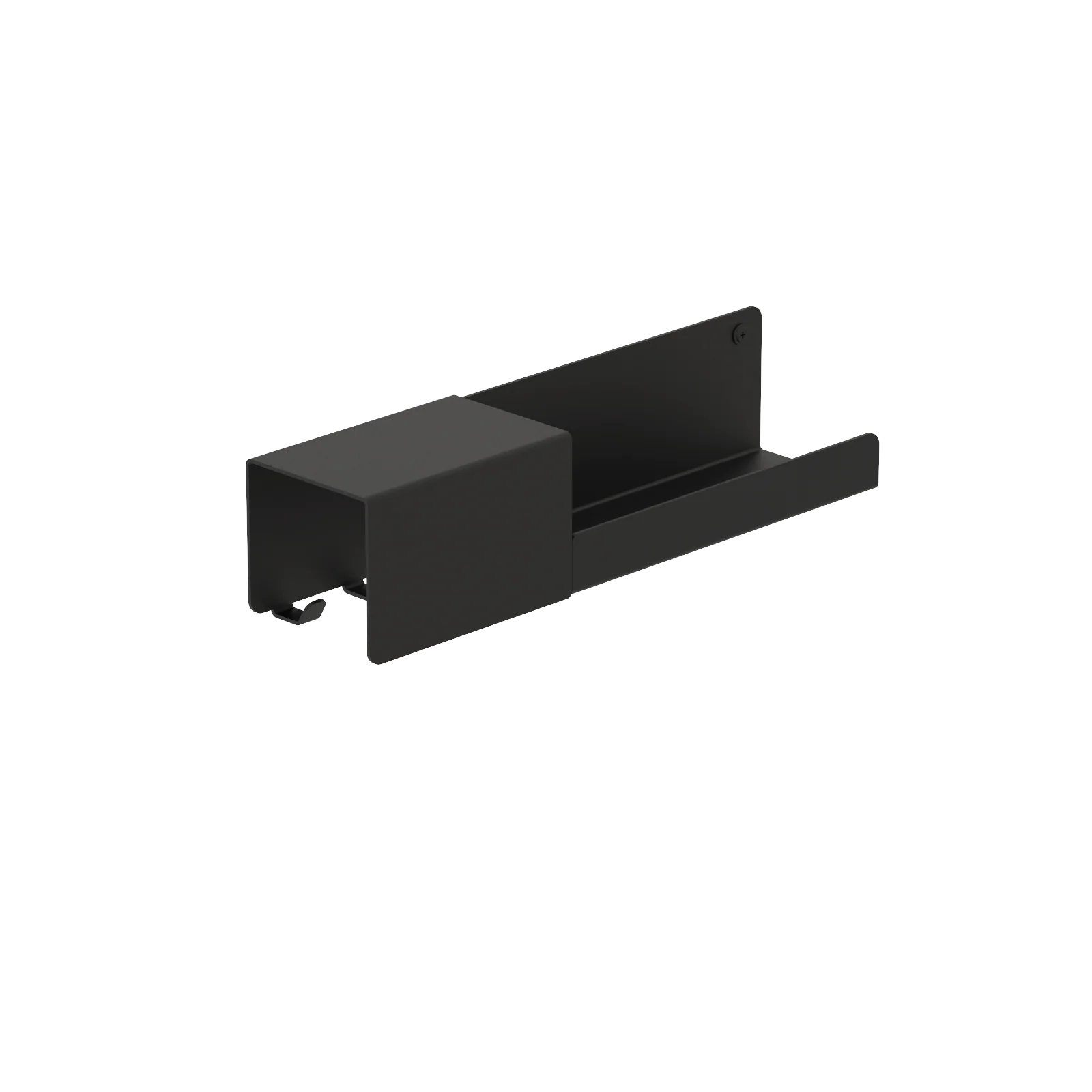 Den anden del er en lukket sektion med skjulte kroge, som giver et ryddeligt og minimalistisk udtryk. Krogene er diskret integreret og perfekte til ophængning af håndklæder, viskestykker, tasker, jakker eller accessories. Når krogene ikke er i brug, bevarer hylden sit rene, arkitektoniske udtryk – helt uden synligt rod.